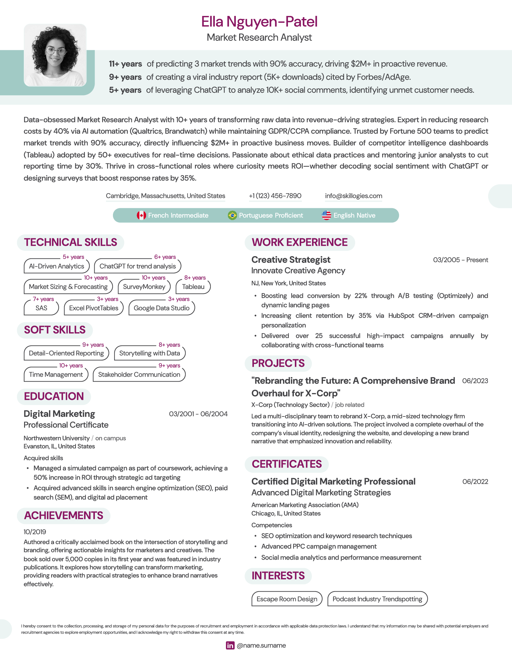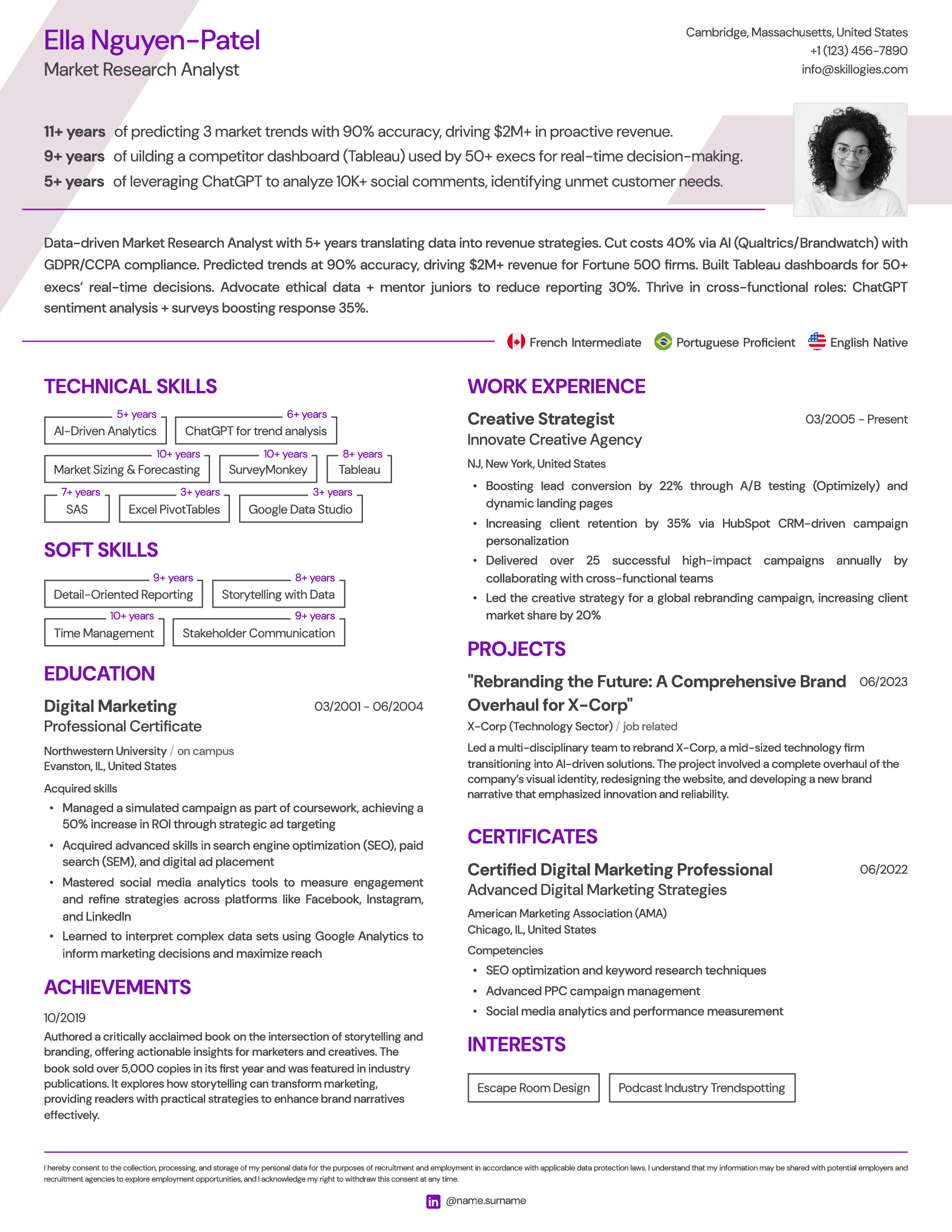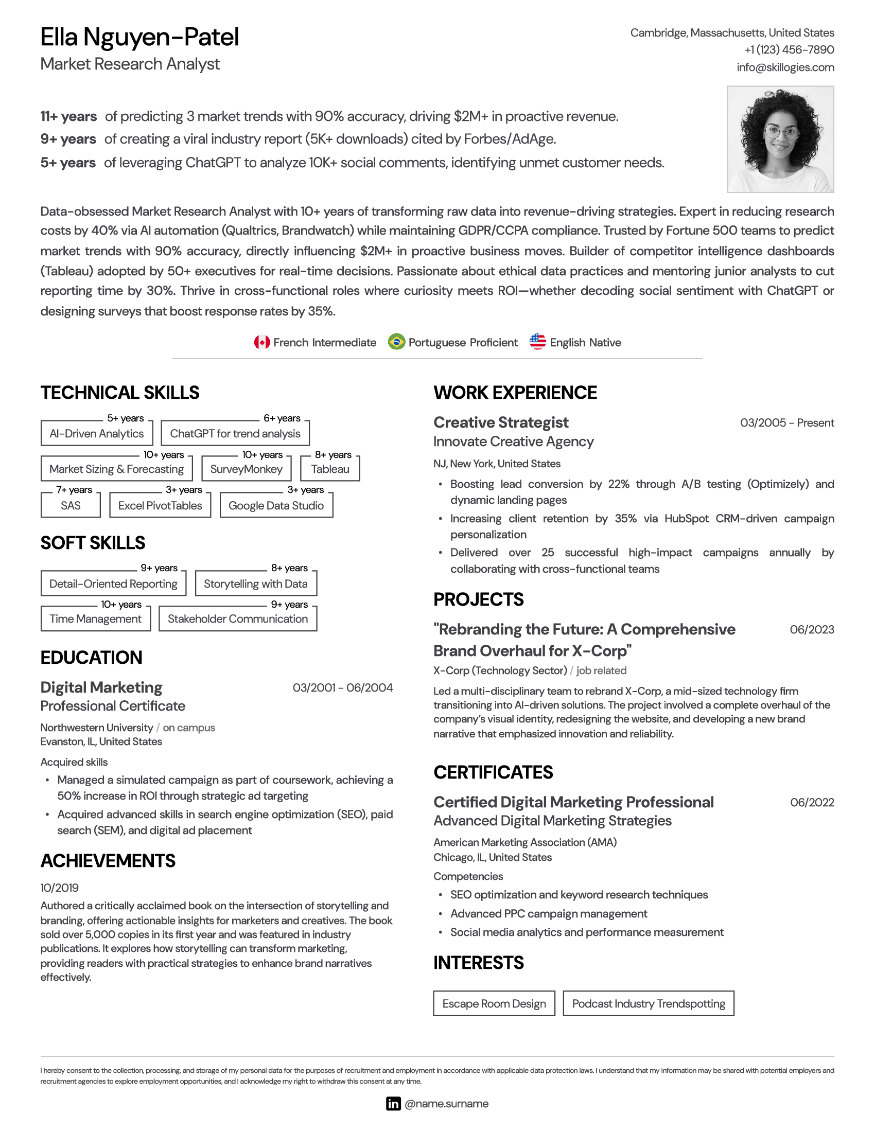 Present your foreign language proficiency levels in a visible and easily accessible spot on your resume for quick reference. Language skills are often a key factor in recruitment decisions, particularly for roles requiring international collaboration or communication. Ensuring they are prominently displayed will help recruiters quickly assess your qualifications and suitability for the role, giving you a competitive edge in the hiring process